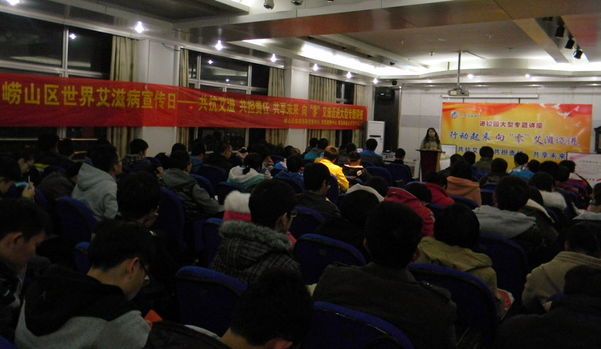 值此世界艾滋病日到来之际,11月27日,由青岛市崂山区卫生局、崂山区教育体育局主办,青岛市崂山区疾病预防控制中心、色情小说 青尘义工队承办的“行动起来,向‘零’艾滋迈进——进校园专…
