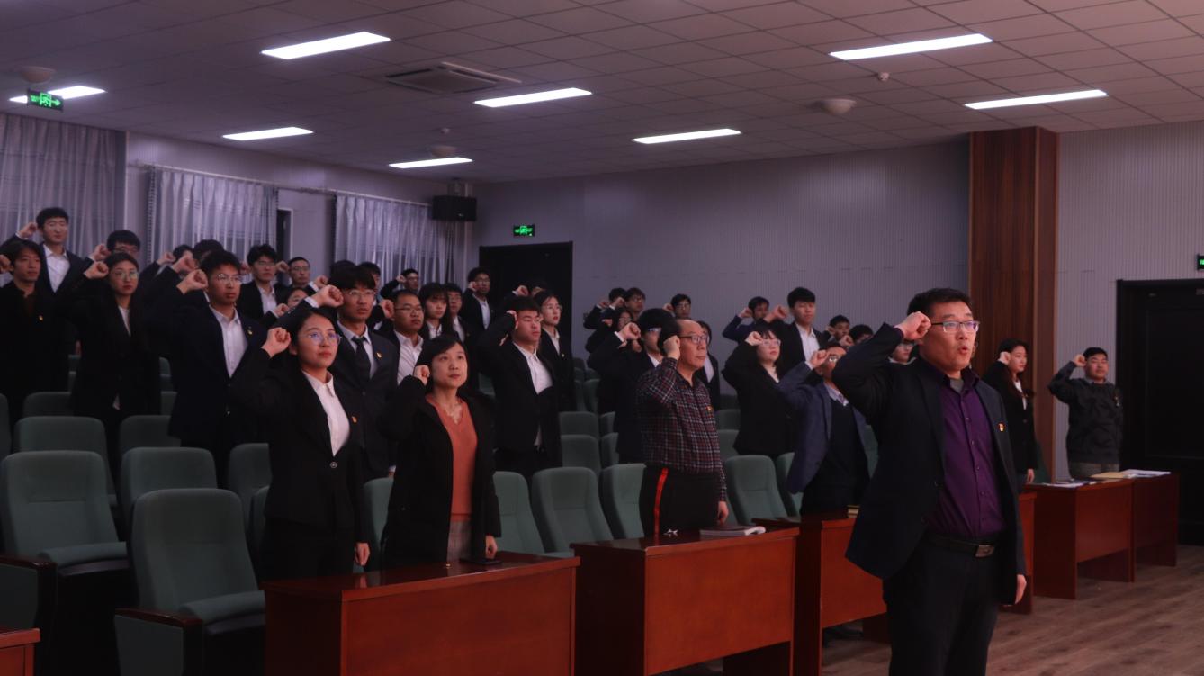 仪式上,孙立军代表学院党委向参加宣誓仪式的预备党员表示祝贺,并对新发展党员提出三项要求:一是要牢固树立党员意识,及时进行思想汇报,不断完善入党动机。二是要强化党员队伍建设,坚持把政治建设放在首位,学会用马克思主义观点分析问题。三是要讲规矩守纪律,规矩的工作和干事创业,发挥党员的先锋模范作用,培养爱国情怀。