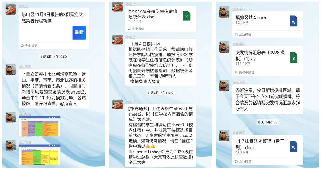 辅导员第一时间组织制作抗疫系列推文和短视频等,引导学生认清当前的严峻形势、遵守静态管理期间疫情防控规定。辅导员队伍责任在肩、闻令而动,把师生安危放在心头,密切关注疫情防控各方要求,动态调整防控工作安排。利用QQ、微信、校园公众号等平台,及时向师生传达上级疫情防控相关要求,切实提升广大师生的疫情防护意识。