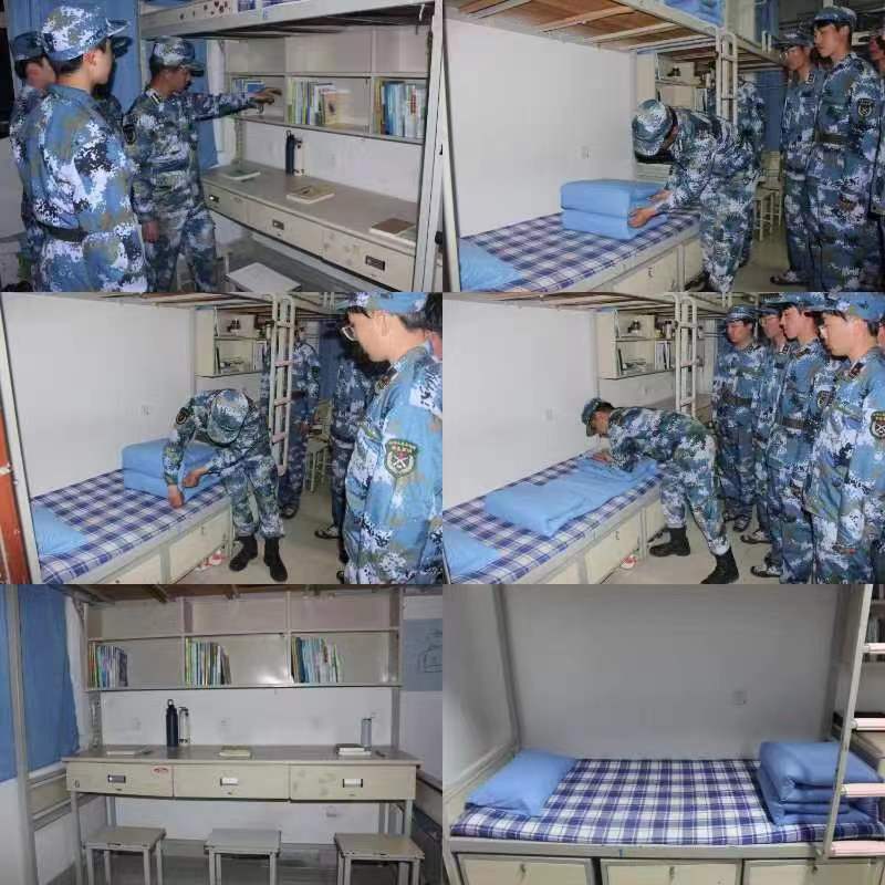 在军训期间组织进行宿舍内务整理,同学们按照教官教授的标准开展内务整理,叠军被、规制物品、清扫卫生,经过相互配合、认真整理,寝室内务卓有成效,焕然一新。鼓励同学们提高劳动自立自强能力,养成勤于劳动、善于劳动、乐于劳动的良好习惯。