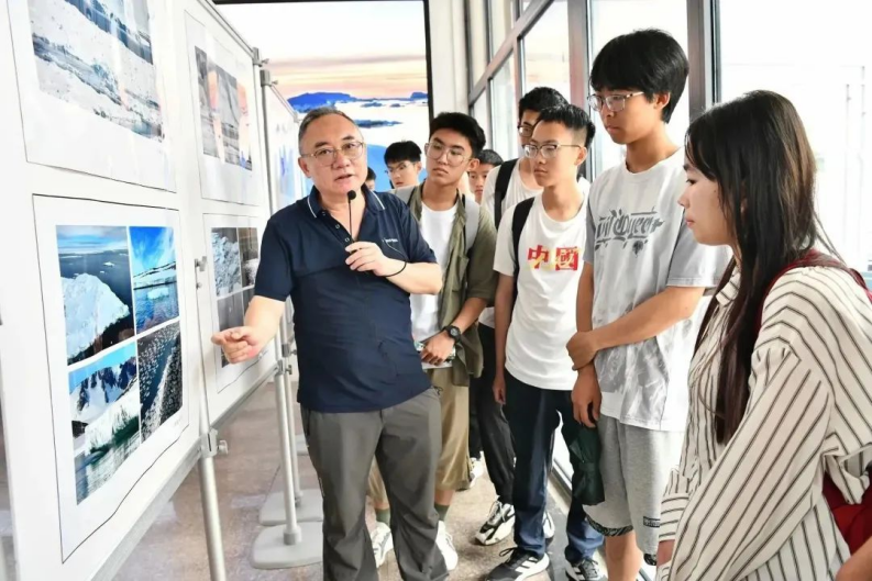 广大师生在展厅认真观看每一张照片,更加直观地走近南极。张清波同志现场为大家讲解了“爱国、求实、创新、拼搏”的南极精神,引发同学们对海洋、对南极的强烈好奇心,增强青年学生的海洋意识,进一步关心海洋、认识海洋、经略海洋,推动我国海洋强国建设。