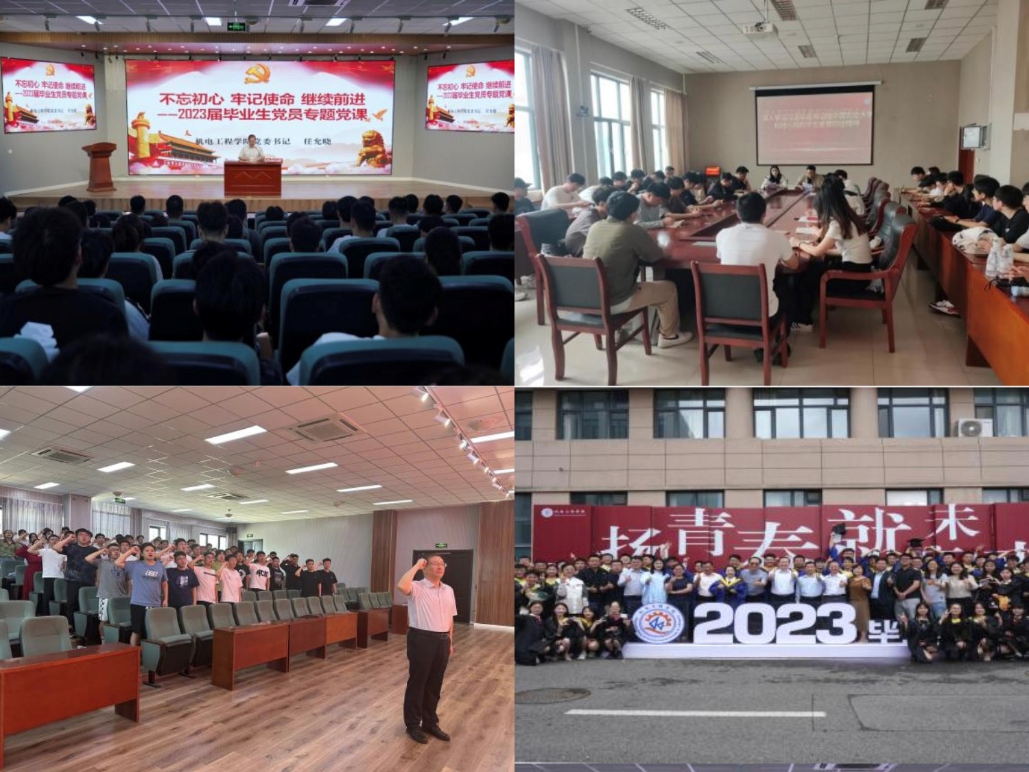 为深入学习贯彻习近平新时代中国特色社会主义思想“十个明确”、“十四个坚持”和“十三个方面成就”等内容,全面落实“立德树人”根本任务和“就业育人”工作目标,以“大思政”工作理念高质量做好毕业生思想政治教育工作,我院近期开展“机扬青春 就赢未来”2023届毕业生主题教育系列活动。