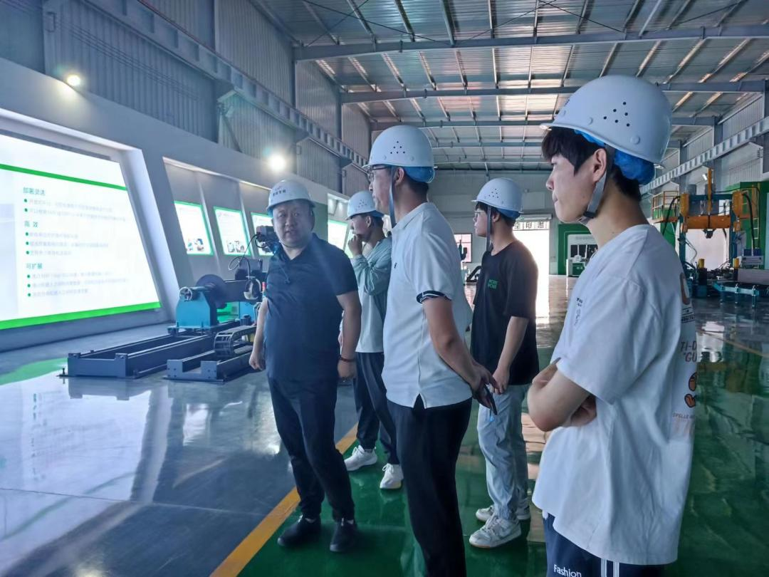 7月20日上午,团队现场走访了凯斯锐智能装备公司,该公司作为“双软企业”,超前谋划工业4.0时代,在钢结构加工设备领域通过智能装备改变传统的钢结构加工工艺,自主研发的核心软件实现了全链路智能装备的自动排产,生产管理,自动套料等数字化智能工厂应用场景的搭建。公司总经理赵浩翔带领师生参观了产品展厅、生产车间和正在调试的生产线,随后进行了座谈,交流中,赵总反映企业处在上升期,追求产品的核心竞争优势,对于设备控制和技术研发类人才需求量大,希望有更多的优秀人才来到宁津,参与到企业的研发中来。在先进的生产线前,在企业负责人的诚挚邀请下,同学们看到了广泛的就业机会和发展空间,对学好本专业更加充满信心。