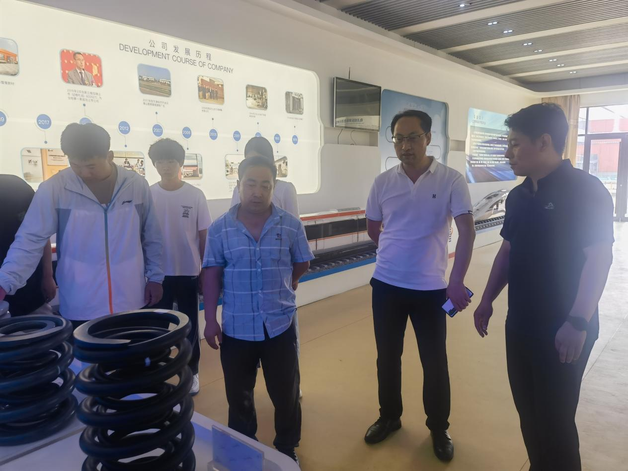 随后团队又对智衡减振科技股份有限公司进行走访调研,该公司是中国铁路总公司机车车辆配件定点生产企业,被复兴号动车组指定为螺旋弹簧的核心供应商,成功实现了国内厂家在高铁、动车弹簧的零突破。调研团在智衡王总的带领下,参观了产品展示厅,了解了不同材料和结构的减振弹簧。参观中,王总提到智衡在橡胶零件行业连创佳绩,在四方校区的橡胶谷也有基地,和学校的专业方向非常契合,对对口的创新型人才特别期待,一下拉近了彼此的距离,在场的师生自豪感和使命感油然而生。