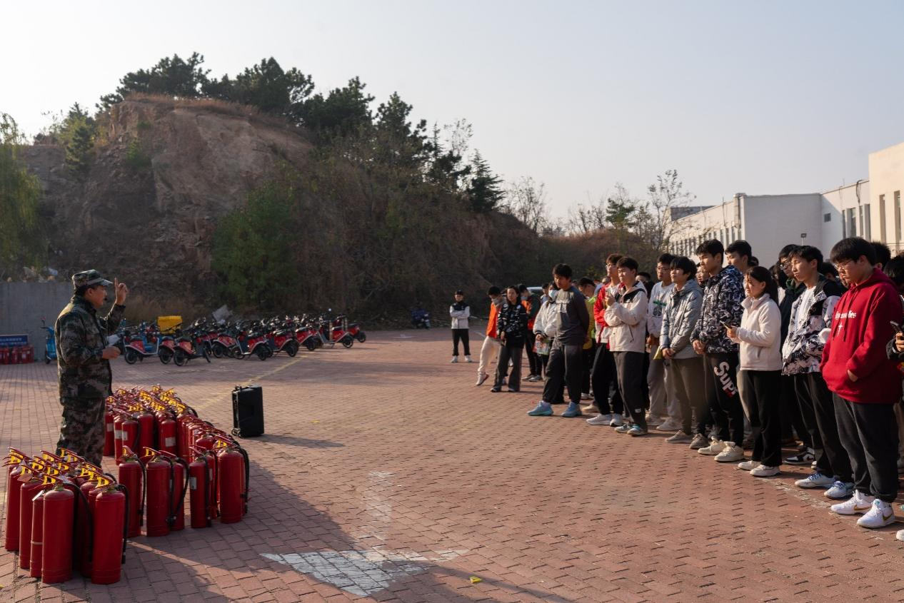 本次消防演练分两个阶段。第一阶段,通过现场扫码参与线上消防安全常识答题的形式,让同学们对消防安全常识有更清晰的了解。培训老师对同学们进行安全理论知识宣讲,提出“四个不”的要求,即不裸聊,不刷单,不投资,不贷款,通过讲解同学们身边真实发生的案例,让同学们提高警惕、及时规避身边的安全隐患,提高安全意识。