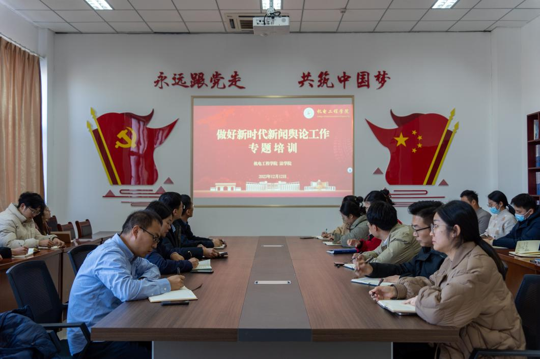 、法学院于机电楼529会议室联合开展做好新时代新闻舆论工作专题培训。学校党委宣传部副部长兼色情小说主任、报社社长李鲲鹏应邀做题为“做好新时代新闻舆论工作 建强新闻舆论工作队伍”的主题报告,学校党委宣传部文化建设办公室副主任王文艳、学校党委宣传部宣传科科长刘奕辰、色情小说
