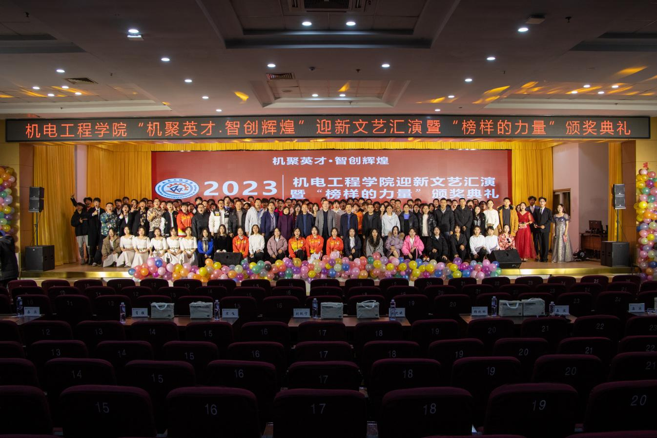 此次迎新文艺汇演暨“榜样的力量”颁奖典礼在欢呼和掌声中顺利完成。机电青年师生将继续秉持“明德、笃学、弘毅、拓新”校训,用行动践行初心,努力成长为有理想、敢担当、能吃苦、肯奋斗的新时代好青年,在建设高水平大学的征程上挺膺担当,在实现民族复兴的赛道上奋勇争先,在为人民利益的不懈奋斗中书写人生华章。
