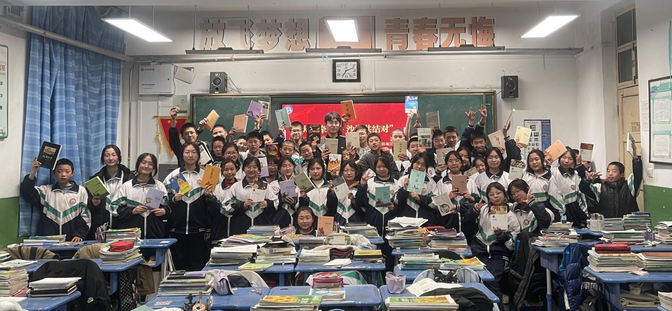 第25届研究生支教团成员张皓越介绍了城阳乡初级中学及7年级2班有关情况,并介绍了由成型中韩232团支部全体团员捐赠的“沙海图书角”。图书角包含《呐喊》《简·爱》“高尔基自传三部曲”等一系列世界文学名著,可以让同学们在学习之余感受文学的魅力,进一步丰富精神世界。同时《古代汉语词典》《初中生必背古诗文》等工具书也应有尽有,方便学生们随时查找使用。