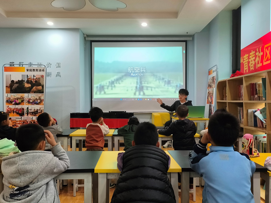 国防科普进社区,童心共筑强国梦。5月13日,微尘志愿者协会在李沧区九水街道延川路社区开展国防科普小讲堂活动。志愿者们围绕“什么是国防”“为什么要建设国防”“国防主要力”“青少年该如何做”四个方面,通过科普讲述、纪录片演映与疑问解答,为孩子们带来一堂深刻的爱国主义公益课。振奋人心的科技展示给孩子们带来不一样的体验,加深了孩子们对国防科技的认识。未来,微尘志愿者协会将继续承办好“延川路科普小课堂”,开展更多生动有趣的爱国主义教育活动,为孩子们扣好人生的第一粒扣子。