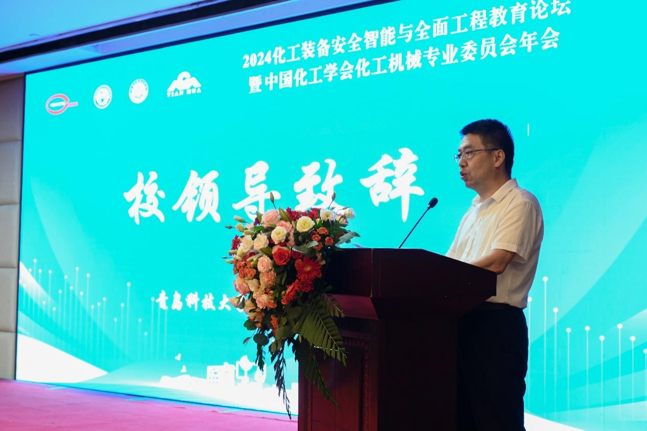 与中国石油大学(华东)联合承办的“2024化工装备安全智能与全面工程教育论坛暨中国化工学会化工机械专业委员会年会”在青岛举行。年会汇聚了来自全国70所高校、科研院所及相关企业的200余名代表,共同探讨新能源新材料领域化工装备技术的创新发展。学校党委常委、副校长吕万翔出席年会并致辞。