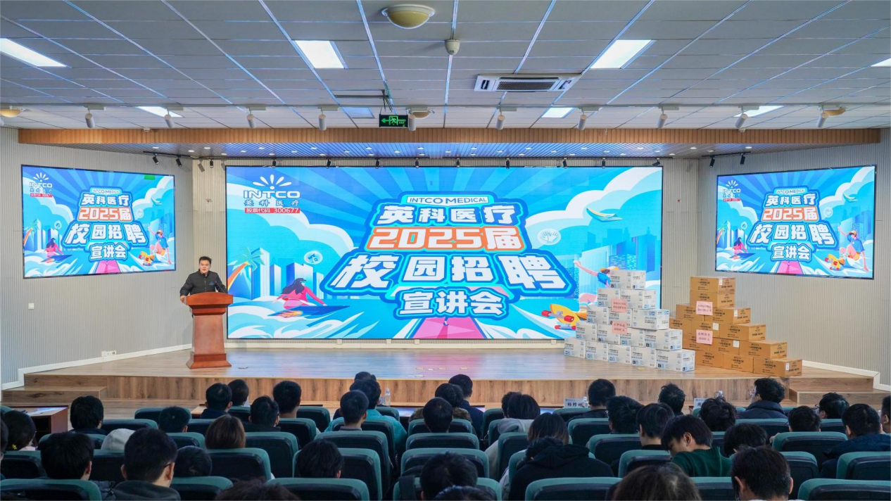 杨小明首先感谢学院对英科医疗的信任和认可,并介绍了英科医疗与学校开展的关于产学研结合、青鸟计划、人才招聘等各方面全面合作情况。随后,杨修明经理针对本届毕业生开展了校园招聘宣讲会,介绍了英科医疗本年度的招聘岗位以及招聘流程,为2025届毕业生提供了便利。