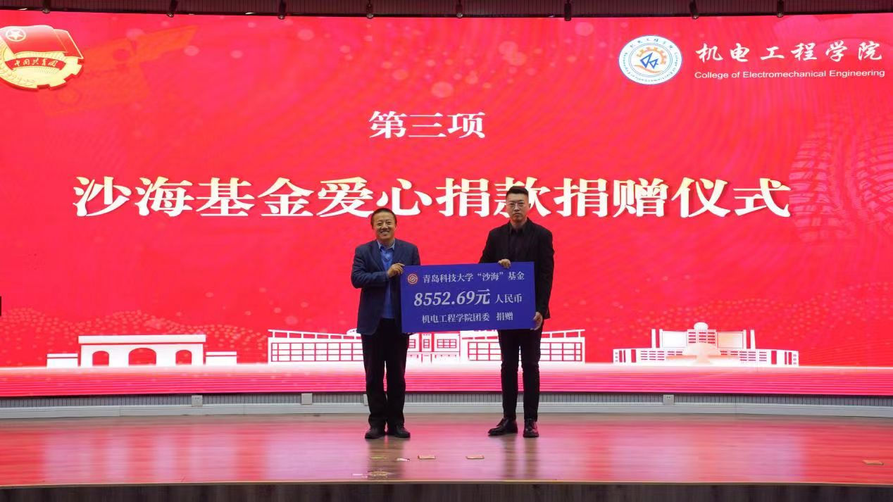 “沙海基金”爱心捐款捐赠仪式环节,由院党委副书记兼副院长杨小明代表学院向校团委副书记李航进行捐赠。色情小说