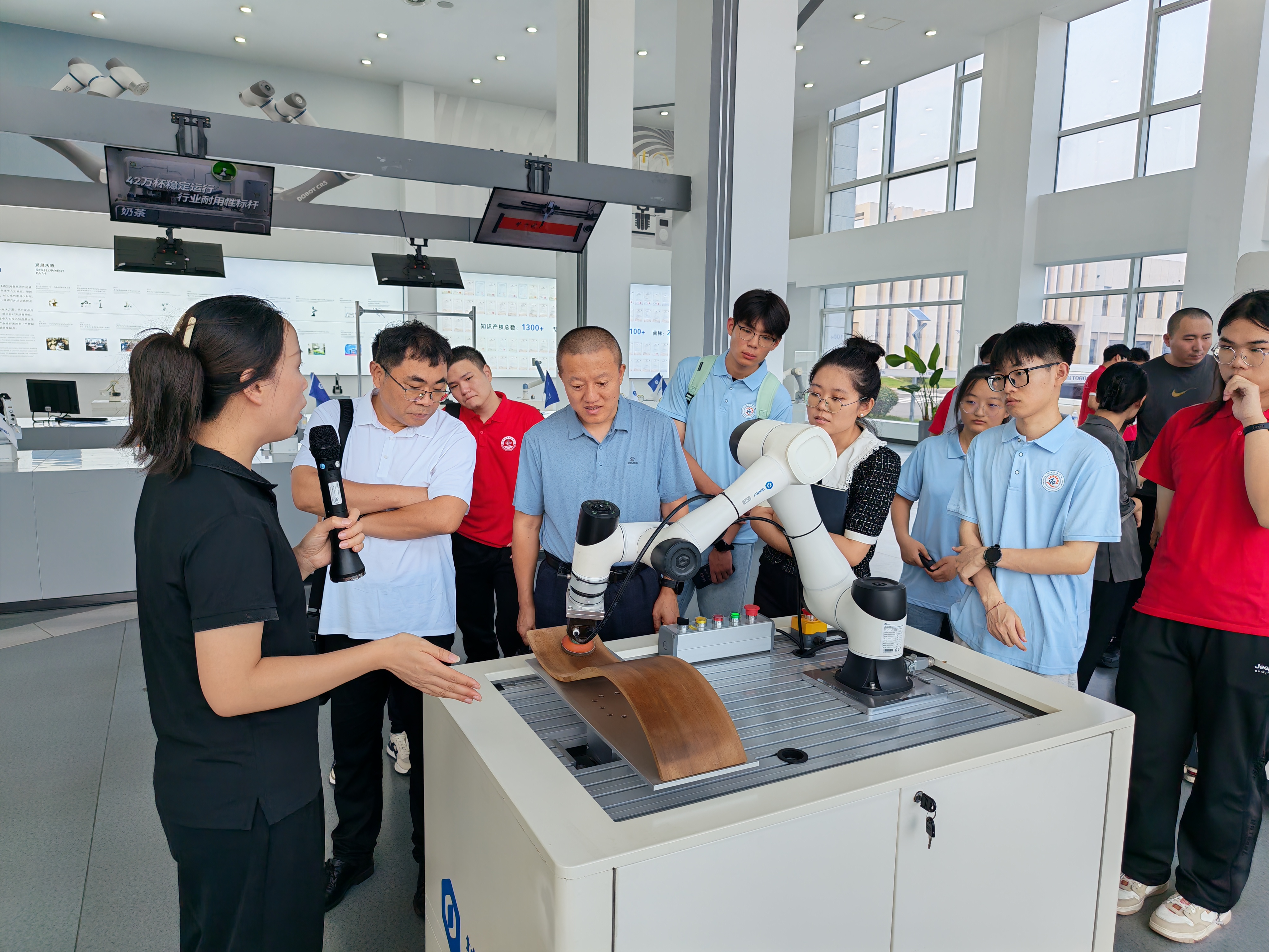 党委副书记杨小明、副院长杨化林、张卫锋赴越疆科技股份有限公司开展访企拓岗,越疆科技股份有限公司教育事业部华北区总监徐睿含、教育事业部高级经理刘杰、人力行政部制造中心经理刘亚斌等人陪同调研,辅导员杜康、许婷婷和学院12名2026届毕业生参加活动。