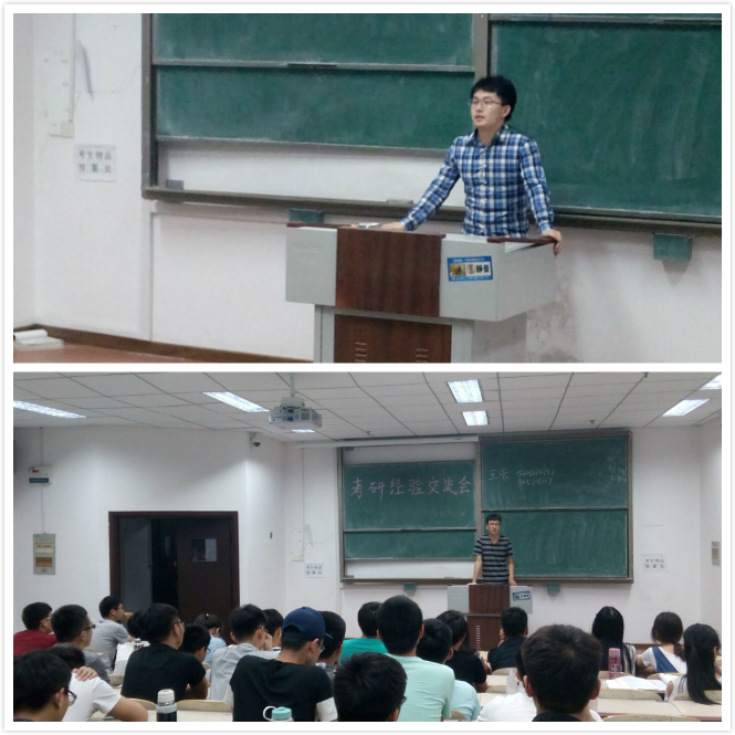 在每场交流会的第一环节中,学长学姐首先以自己的切身经历向同学们讲述了考研的宝贵经验,指出考研一定要明确考研目的,并根据专业特点对学校、选择做出了相关的分析,在备考方面,他们分别从数学、英语、政治、专业课四方面分享了自己的复习方法与经验。