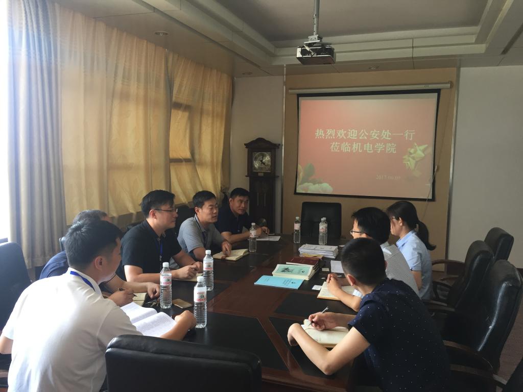 学生工作基本情况,重点围绕特殊生排查、学生安全教育、校园消防等方面工作进行介绍。严增兴介绍了保卫处相关科室工作职责作,并征求了学院对公安处的工作意见。会上,双方就“两学一做”学习教育、学校安保、实验室消防、学生安全教育等方面进行了深入交流。