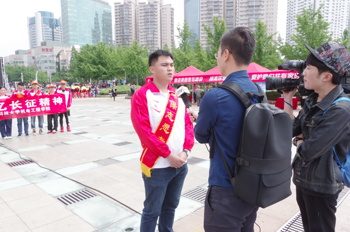 6月5日,开展了“绿色长征健步行”为主题的环保活动。从学校出发,徒步行至青岛市五四广场,进行环保宣传。志愿者们手持环保标语的横幅,不时向沿途的市民们宣传环保知识和节约理念。遇到丢在地上的垃圾杂物,志愿者们也会及时捡起,丢入自备的垃圾袋中。在志愿者们步行到达五四广场后,受到了市环保局副局长唐季礼、宣教中心主任赫旭的接见,并与岛城著名环保公益人士“青岛环保哥”王德洋进行环保志愿活动的交流,最后亲切合影。向广大市民展示了当代大学生的风采,赢得普遍赞誉。