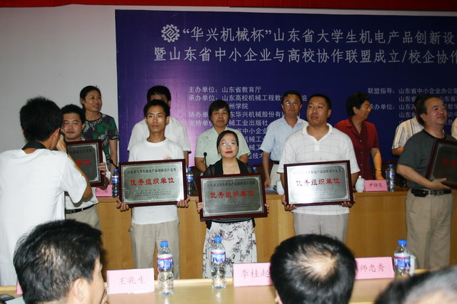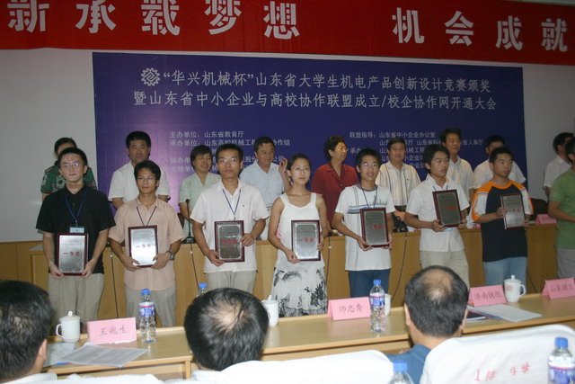 派代表参加了在德州学院举行的“2007年“华兴机械杯”山东省大学生机电产品创新设计竞赛”决赛。此次竞赛由山东省教育厅主办、山东高校机械工程教学协作组承办,以“绿色、环保、安全、和谐”为主题,全省共有来自山东大学、中国石油大学等50余所高校6000余名师生参加比赛,预赛作品达1200余件,涉及机械、电子、车辆、化工、纺织、轻工等行业,经过各高校评比,共推选出290个作品参加此次决赛。