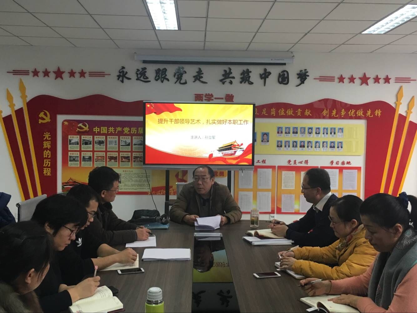 党总支书记孙立军以《提升干部领导艺术 扎实做好本职工作》为主题,为力学教研室和分团委讲授专题党课。力学党支部书记李剑光主持党课。
