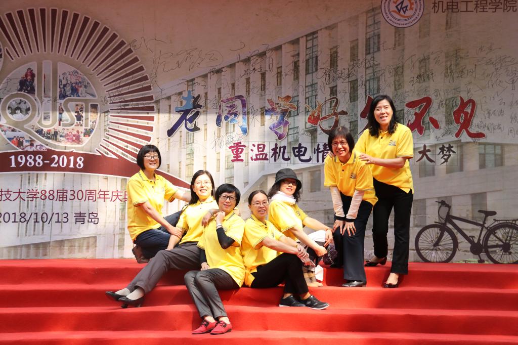 最后,与会领导与穿着学士服的橡机、化机专业的88届校友们合影留念。