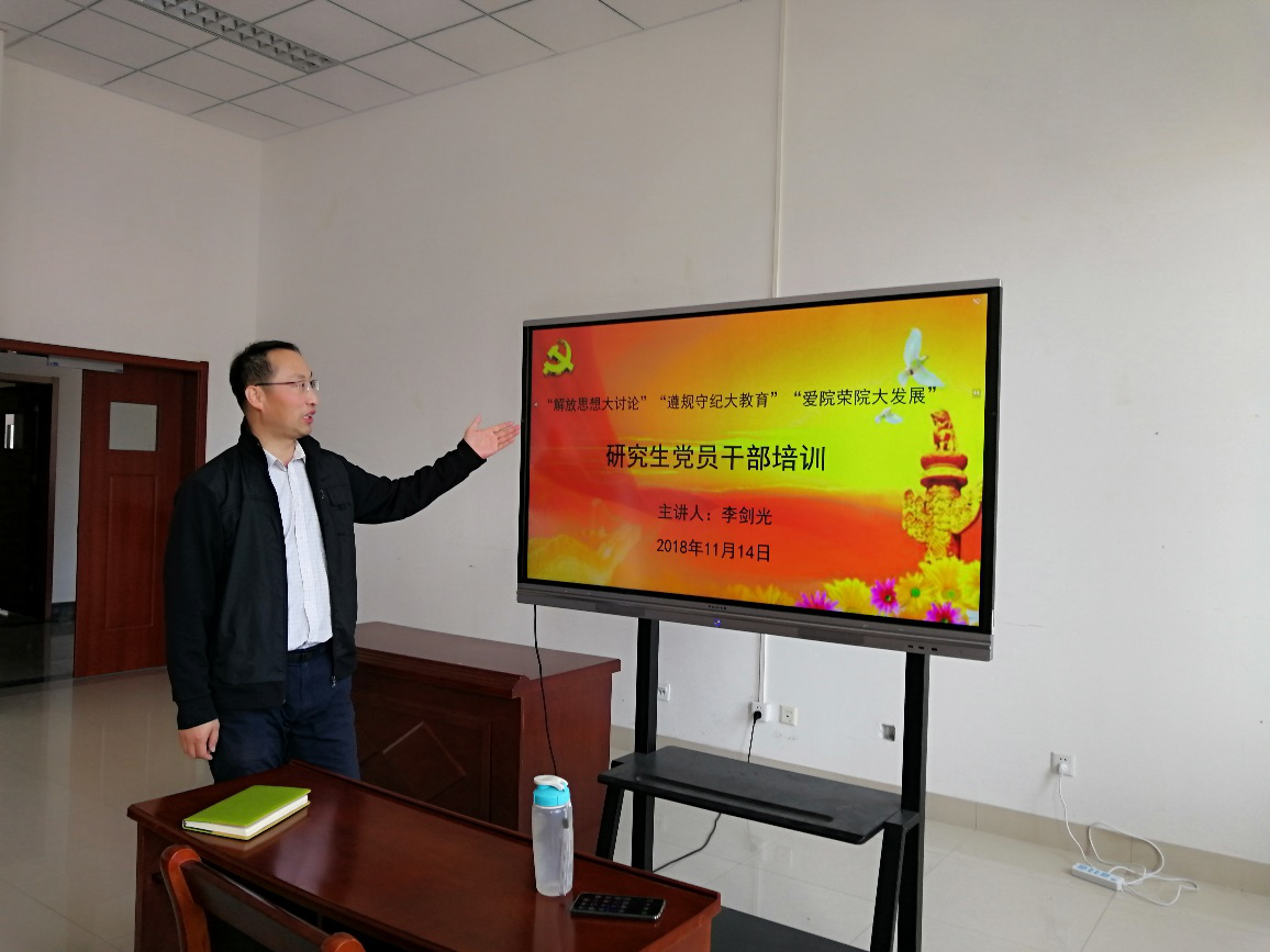 研究生党员、学生干部培训会议在崂山校区机电楼529会议室举行。学院研究生辅导员李剑光老师、曹科伟老师,研究生党员、各年级班委以及院研究生会成员参加了会议。