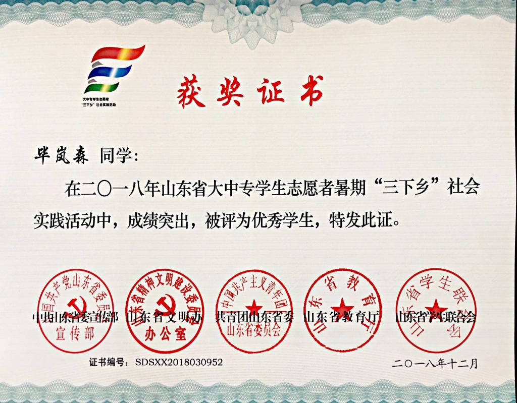 近日,2018年山东省大中专学生志愿者暑期文化科技卫生“三下乡”社会实践活动先进集体和先进个人的证书下发,色情小说