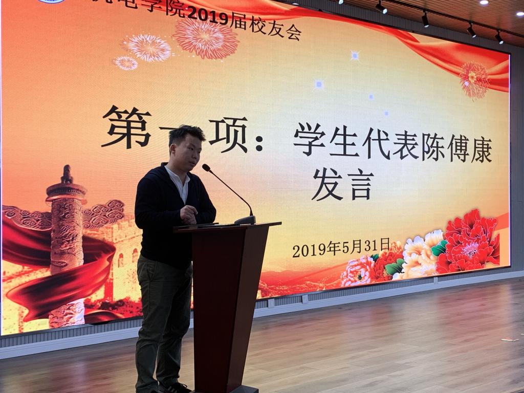 会上,2019届校友代表陈傅康同学上台发言,他表示在大学四年是最美好的时光,如今面临毕业,由学生角色转换成校友角色,就要做好校友工作,学会感恩母校,文明离校,维护学校荣誉,爱院荣院,做一个“有精神、有文化、有活力、有责任、有特色”的“五有”科大人。最后,曲智强老师向全体校友成员分发校友信息员工作证并解读校友信息员的待遇及义务,并提出三点希望,一是认真履行校友信息员义务;二是用行动爱校荣院,展科大精神,橡胶品格;三是文明离校,做优秀毕业生。