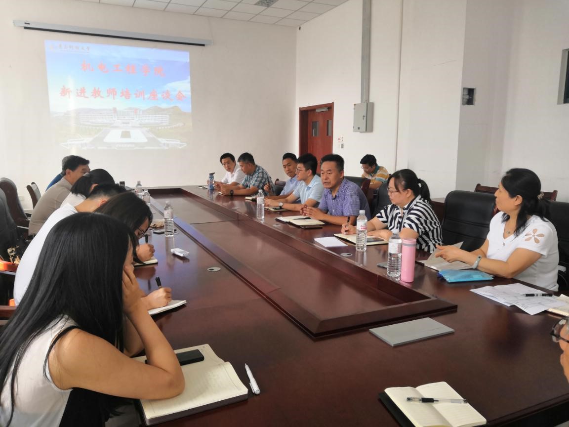 副院长郭建章、学院校级督导员付平、孙双双以及2018-2019年新进二十余位教师参加了会议,会议由郭建章主持。