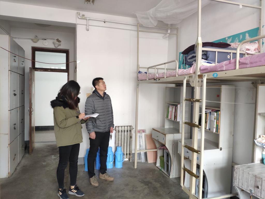 党总支副书记兼副院长王伟、分团委书记兼学院学工办主任王作辉带队进行对学院宿舍进行全面排查。