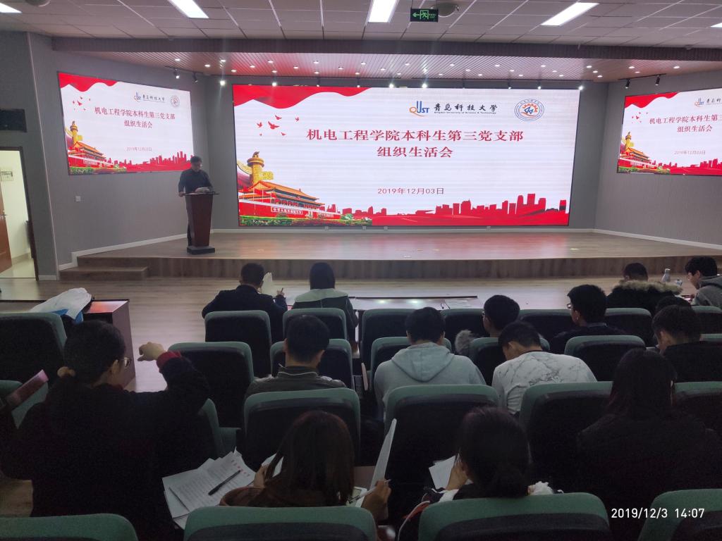 党总支的安排下,12月3日本科生第三党支部在机电530会议室举行了党支部组织生活会及2019年度民主评议会。支部书记王作辉主持了会议。
