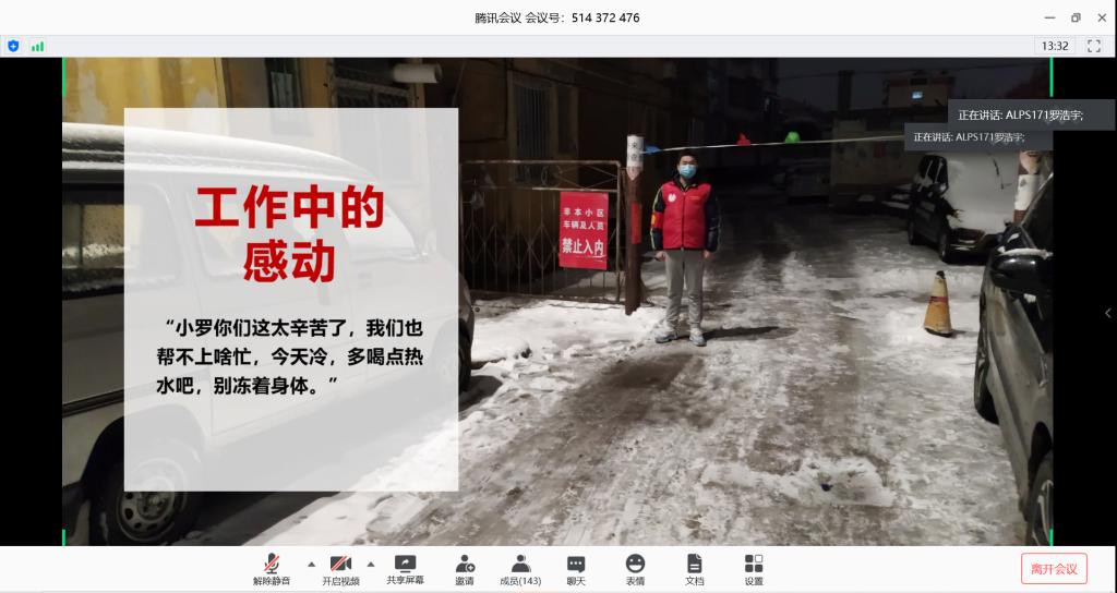 罗浩宇从一名学生党员和学生骨干的角度讲述了自己参与疫情志愿工作的所感所想。疫情暴发正值新年期间使得防疫工作更加紧张复杂,而他在社区居民的积极配合和温暖关怀下勇往直前,利用奖学金为工作人员和环卫工人送去温暖;作为色情小说