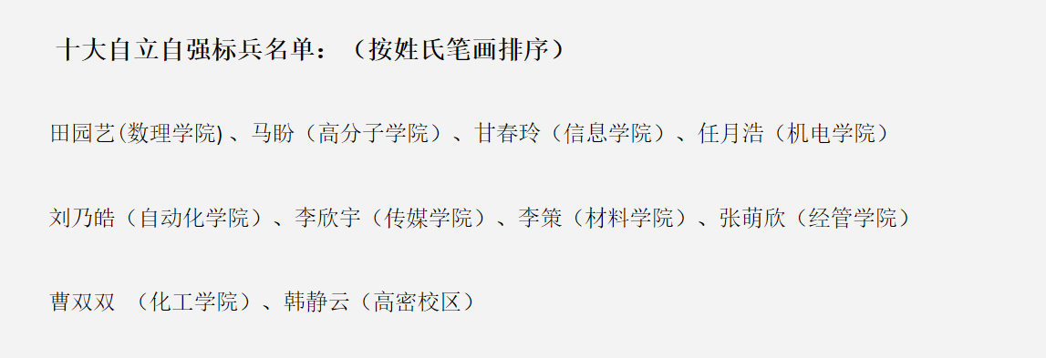 “十大自立自强标兵”评选办法》,我校自2020年6月启动第十六届“十大自立自强标兵”评选活动,经学生申请、学院推荐与公示、学校审核、网络展示、投票(易班)、专家评审等程序,现评选公示中,我院任月浩同学入选。