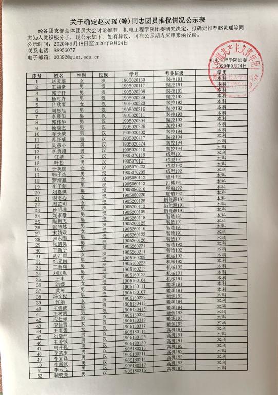 团委组织部对关于确定赵灵瑶(等)同志团员推优情况进行了公示,公示期内无异议。