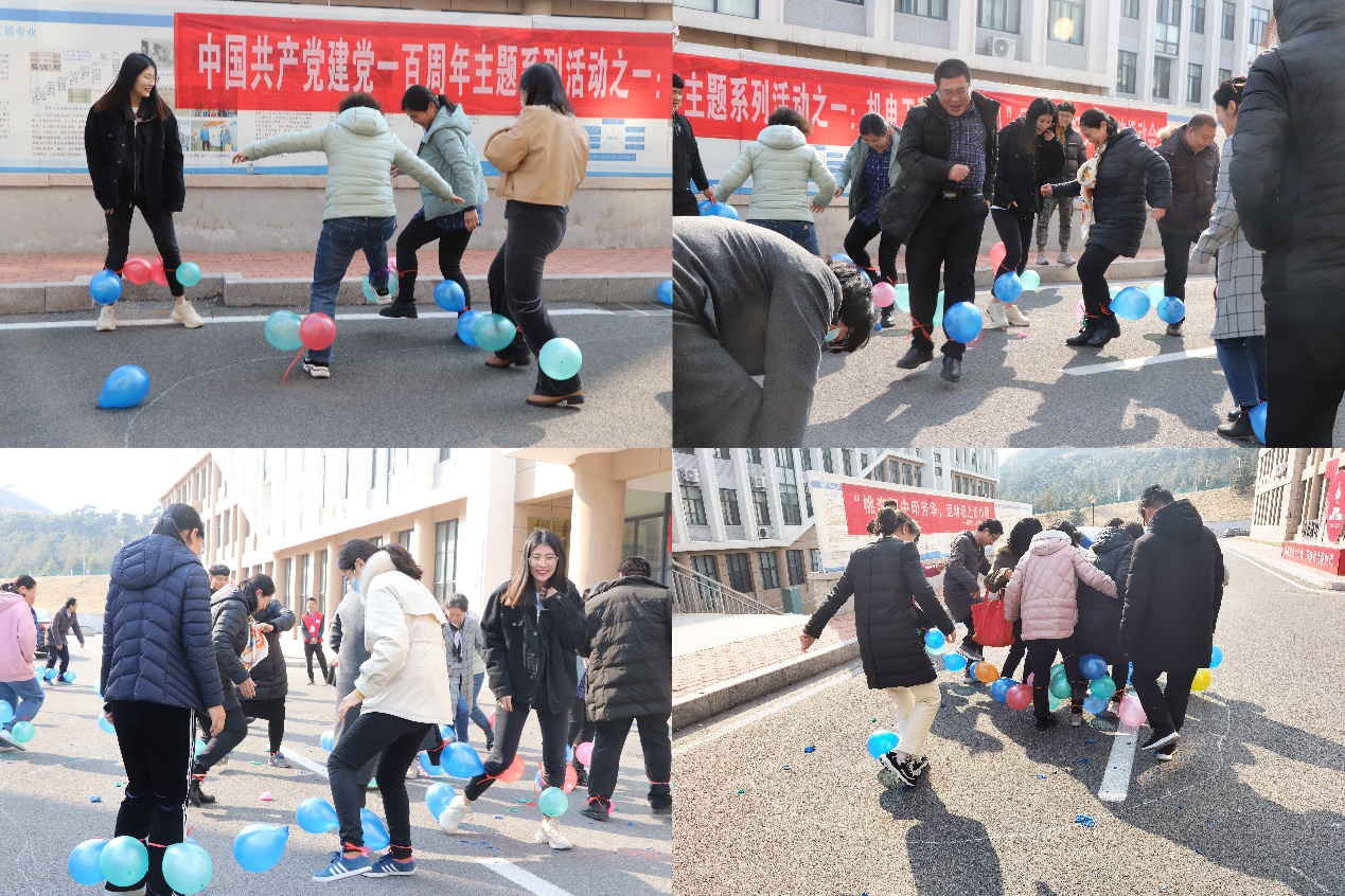 “摸石头过河”中,教师们争先恐后,充分展现了身体协调能力。