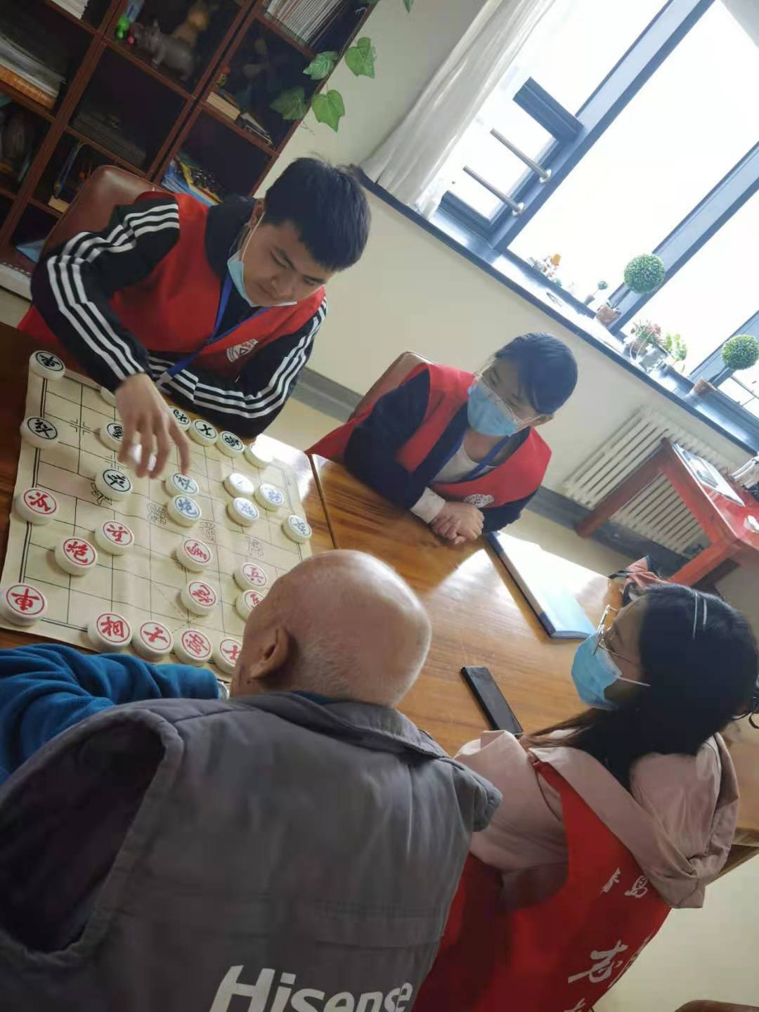 志愿者们走进福山老年公寓开展尊老敬老志愿服务,在公寓护工的细心指点下,志愿者们陪老人唱歌、下棋、写字,教老人做操,陪伴老人晒太阳,学唱红歌,与老人谈古论今、畅聊趣事,敬老院内洋溢着欢声笑语。