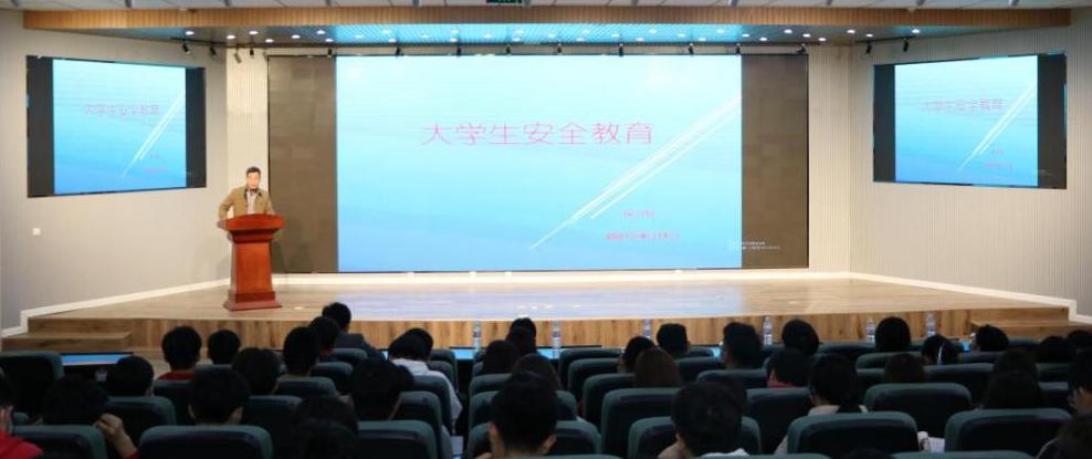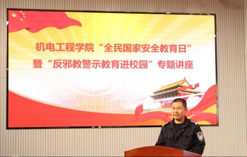 在D3楼530会议室举行全民国家安全教育日主题教育暨反邪教警示教育进校园专题讲座。青岛市崂山区公安局反恐大队队长辛华忠、学校保卫处副处长严增兴、学院党委副书记兼副院长肖强以及学院师生代表180名参加活动。