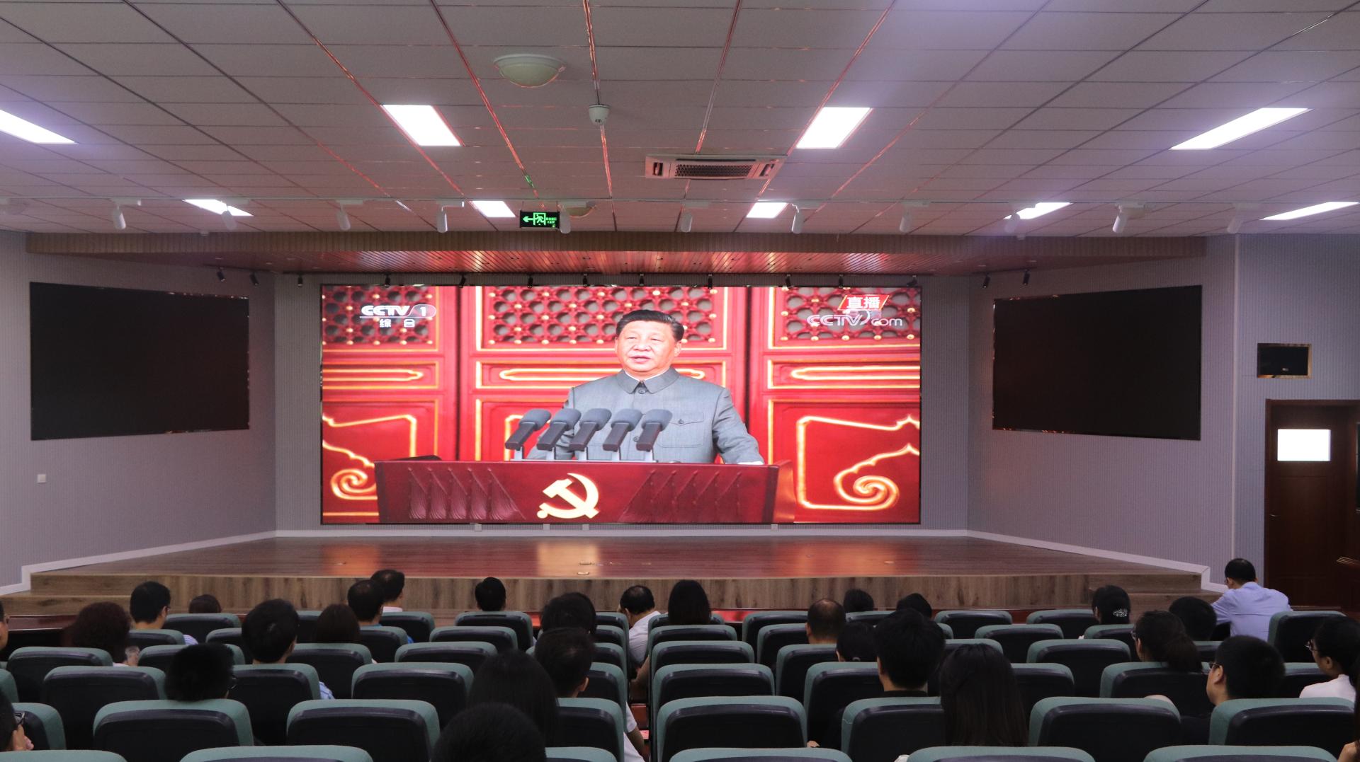 师生党员代表在机电大楼530会议室集中收听收看庆祝大会活动实况。观看过程中,大家聚精会神,认真收看,会议闭幕后,大家备受震撼,倍感鼓舞,紧紧围绕庆祝大会特别是习近平总书记在大会上作的重要讲话进行了热烈讨论。