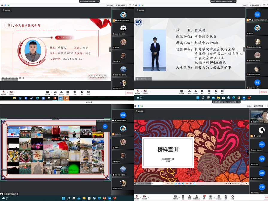本科生第一党支部的六名党员同志,通过前期的安排,在周二下午通过线上的方式,结合自己的经历与学弟学妹们进行了亲切的交流。他们为学弟学妹们起到了先锋模范作用。