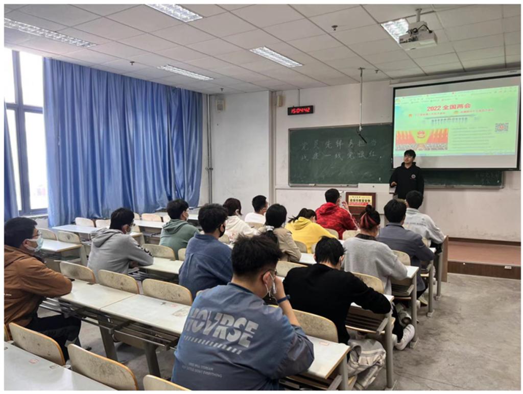 党小组组长孙济源组织支部全体党员深入学习全国两会会议精神。马元宇等同志分别领读《2022年全国两会政府工作报告》中2021年工作回顾、2022年经济社会发展总体要求和政策取向、2022年政府工作任务三部分内容。