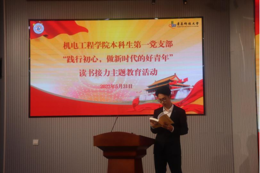 本科生第一党支部开展了“践行初心,做新时代的好青年”读书接力主题教育活动。本次会议由本科生第一党支部书记于超主持,全体党员同志参加。