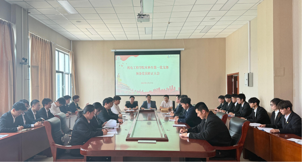 本科生第一党支部于机电楼518会议室召开了预备党员接收大会。本次会议由党支部书记于超主持,应到正式党员33名,实到会33名。