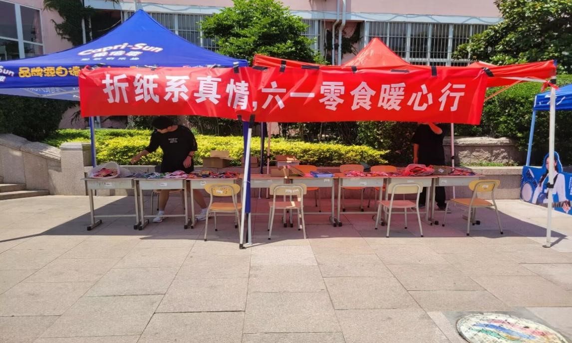 团委志工部红心青年志愿者协会在南苑餐厅举办以“折纸系真情,六一零食暖心行”为主题的志愿服务活动。