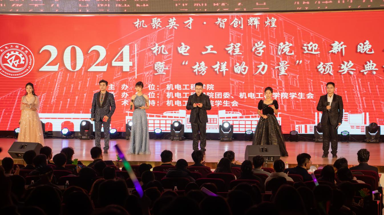 2024“机聚英才·智创辉煌”迎新晚会暨“榜样的力量”颁奖典礼在崂山校区第二报告厅举办。学院党委书记任允晓、党委学生工作部副部长李春家、校团委副书记李浩、学院副院长杨化林、学院副院长李剑光、学院党委副书记兼副院长杨小明、各兄弟学院团委书记代表以及全体团委老师和2024级全体新生参加晚会。