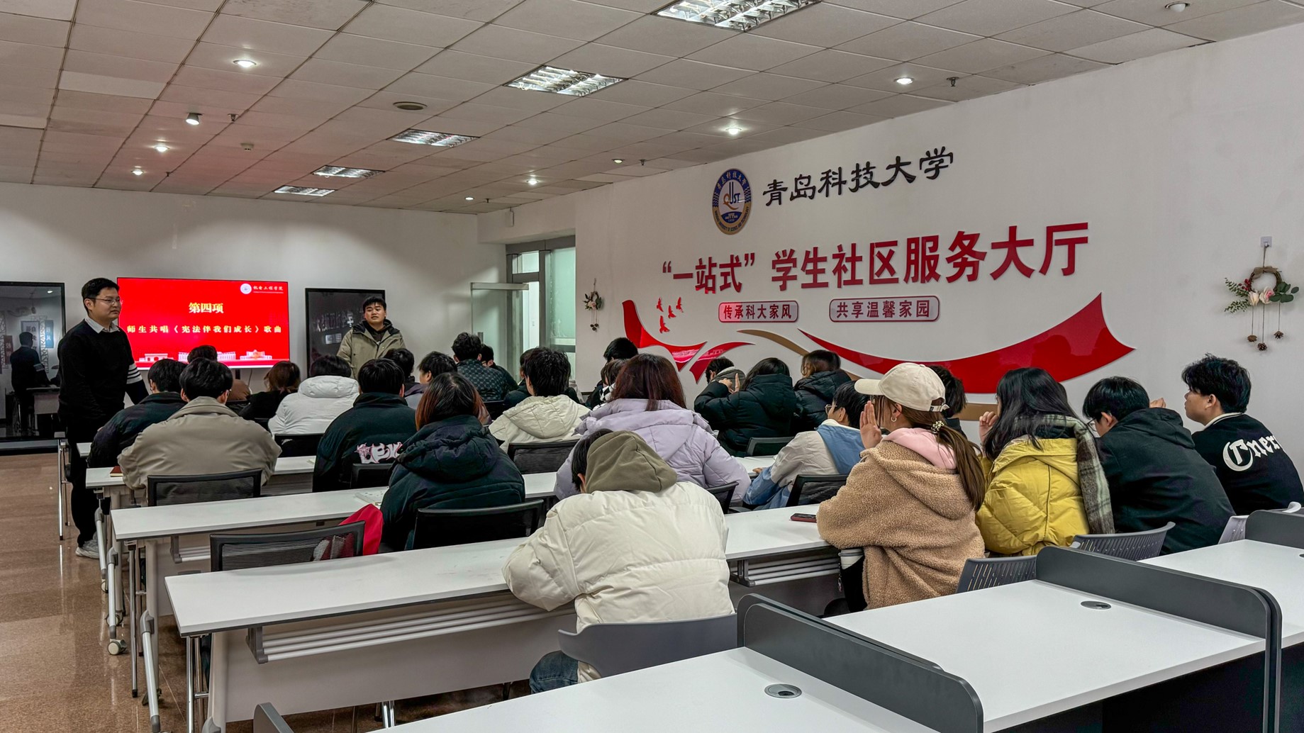 值得一提的是,宪法歌曲传唱为本次“宪法宣传周”活动增添了一抹别样的色彩。学院组织老师学生认真学习如《宪法伴我们成长》等主题歌曲。学生们在课余时间哼唱歌曲,让宪法以一种轻松愉悦、深入人心的方式融入师生的日常,极大地增强了宪法宣传的感染力与吸引力,使宪法精神如春风化雨般滋润着每一个人的心田。