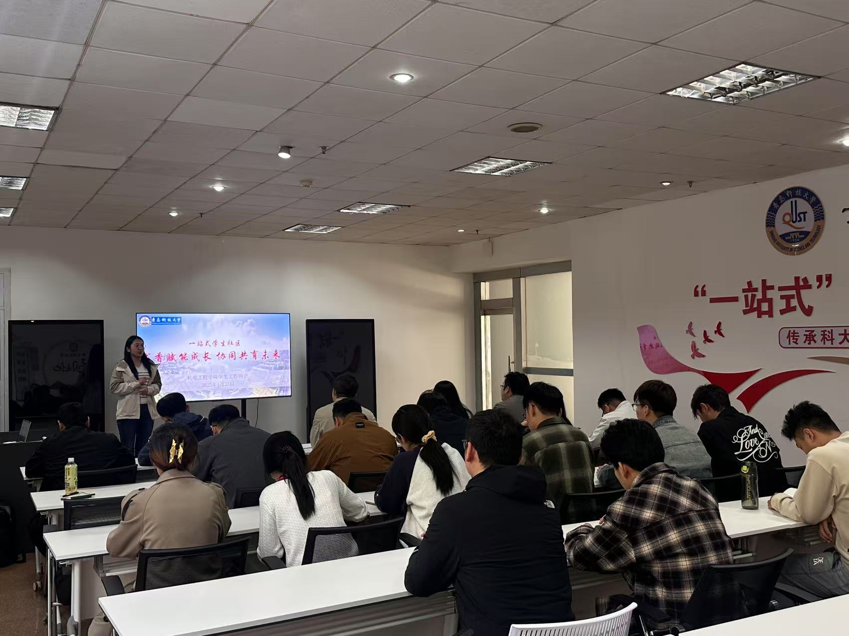 在崂山校区“一站式”学生社区服务大厅学业发展中心组织开展“书香赋能成长、协同共育未来”学生工作推进会。全体专兼职辅导员、学生组织代表、党员代表参加会议,会议由辅导员崔瑛主持。