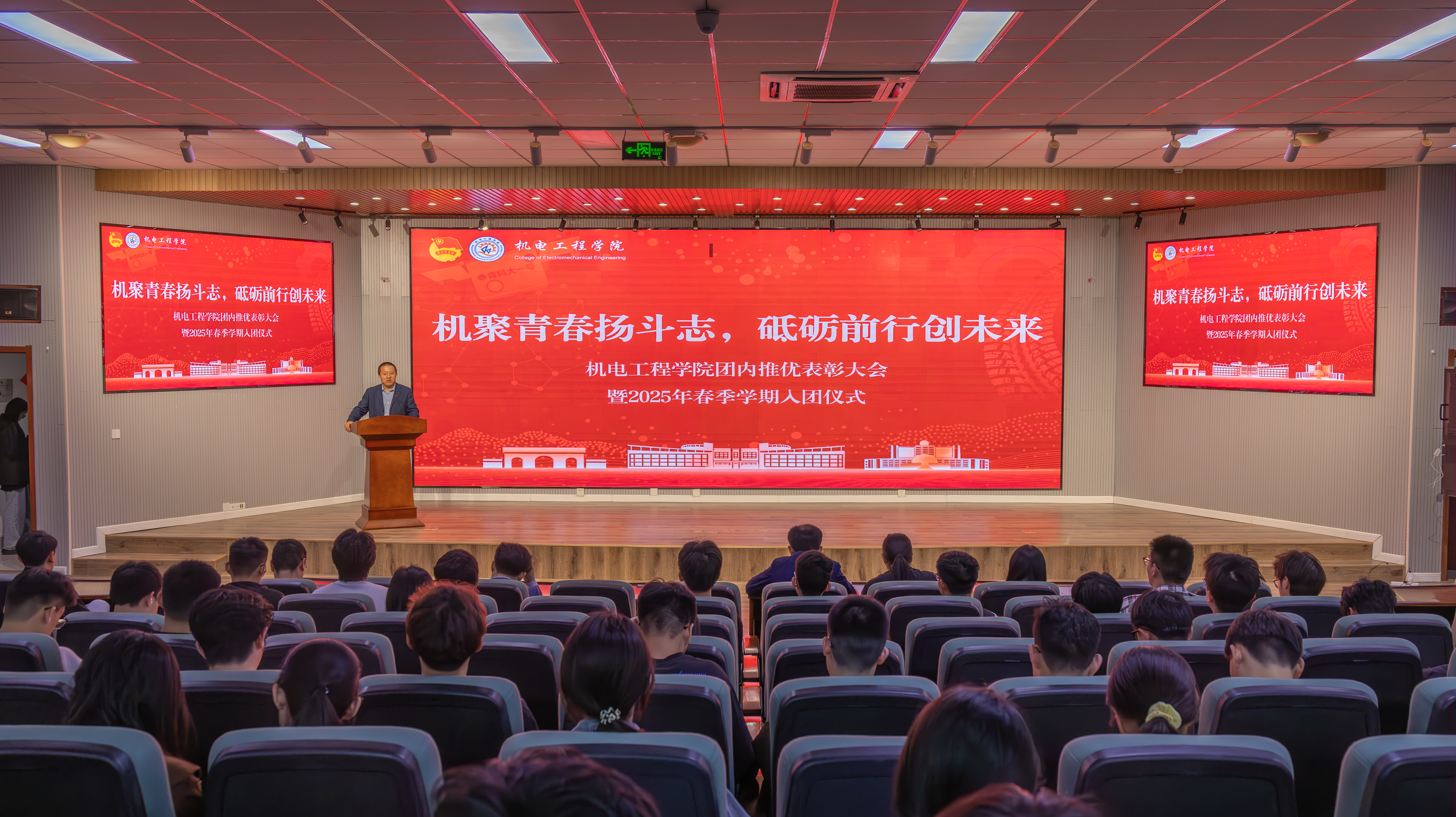 隆重举办“机聚青春扬斗志砥砺前行向未来”团内推优表彰大会暨2025年春季学期入团仪式。学院党委副书记兼副院长杨小明、团委全体专兼职团干部出席会议,2025年春季新发展团员、入团积极分子以及学生代表参与会议。