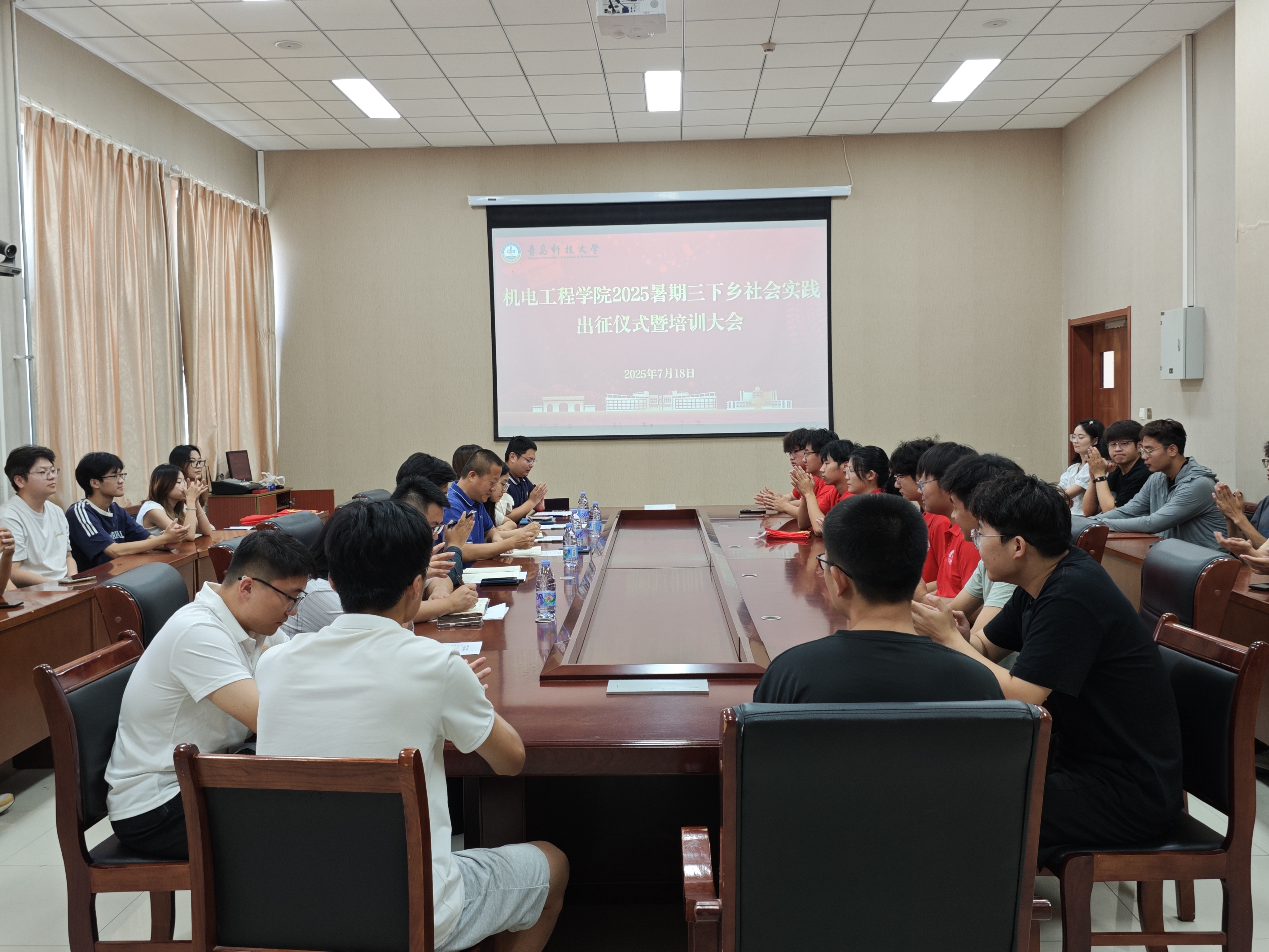 在D3-518会议室举行2025年暑期“三下乡”社会实践出征仪式暨安全、技能培训会。学院党委副书记兼副院长杨小明,团委副书记李慧敏、于超,实践团队指导老师及学院校级、院级重点队学生代表参加会议。
