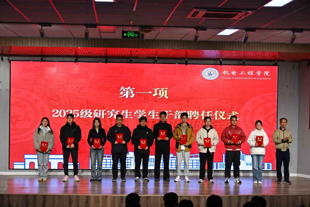 在主题团课上,逄柏鹏为2025级研究生团学干部代表颁发聘书,并代表学院团委向全体研究生团学干部表示祝贺,结合学校学院实际,围绕团学工作使命,提出四点希望:一是筑牢思想根基,提升引领力,以理想信念为舵,做传递价值导向、凝聚青春力量的“机电排头兵”;二是强化协作意识,锤炼组织力,主动担当作为,成为推动学院各级团组织建设提质增效的“关键抓手”;三是坚守服务初心,增强服务力,牢记“全心全意为同学服务”的宗旨,脚踏实地为同学办实事、解难题;四是立足长远发展,提升贡献度,在科研创新、学科竞赛、志愿服务等领域勇当先锋,以实际行动彰显新时代研究生的青春底色与责任担当。