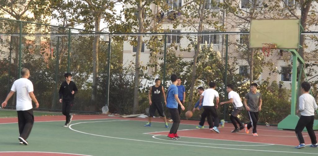 比赛一开始,研一同学就表现出强烈的取胜欲望,老生也不示弱,第一节的比分可谓是紧紧相逼,新生暂时领先。第二节开端,老生队员调整战术,全力打好配合,快攻猛打,屡次抢到前场篮板球。老生队伍打出了一波小高潮,将比分缩小至6分。在接下来的比赛中,辅导员李剑光和秦楠老师也参与其中,观众席欢呼连连。