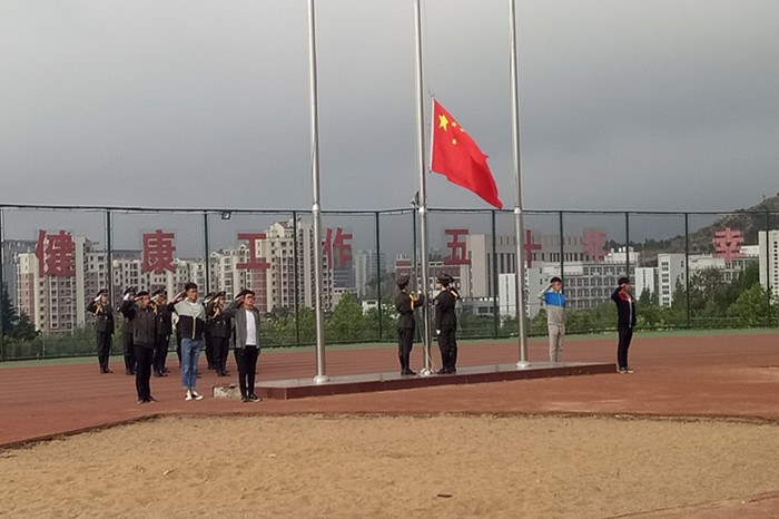 与数理学院共同集结在崂山校区田径场,一同举行升国旗仪式。