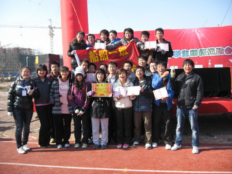 22个班参加此次运动会,船舶111班经过两天的艰苦拼搏,用泪水与汗水换来了辉煌的成就,喜获团体总分第一名。